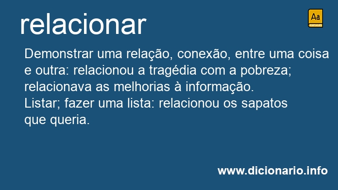 Demonstrar uma relação, conexão, entre uma coisa e outra: relacionou a tragédia com a pobreza; relacionava as melhorias à informação.