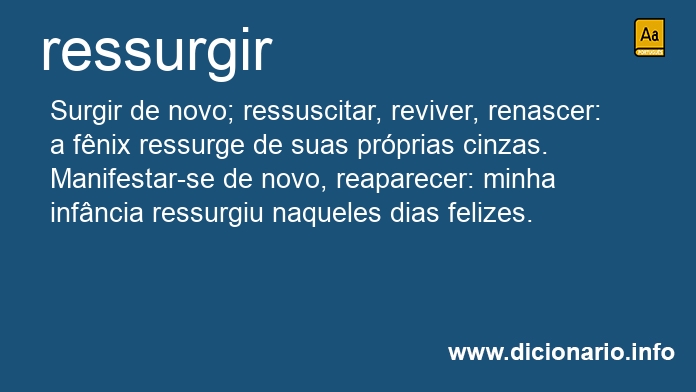 Surgir de novo; ressuscitar, reviver, renascer: a fênix ressurge de suas próprias cinzas.