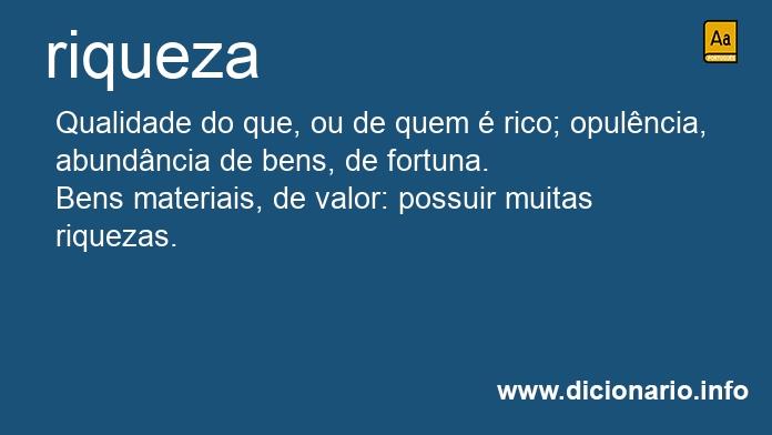 Qualidade do que, ou de quem é rico; opulência, abundância de bens, de fortuna.
