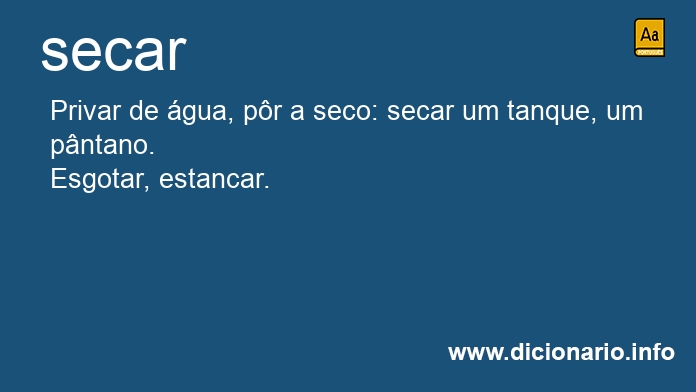 Privar de água, pôr a seco: secar um tanque, um pântano.