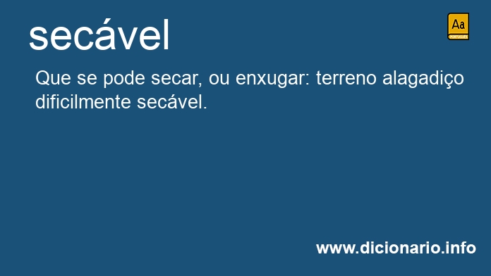 adjetivo Que se pode secar, ou enxugar: terreno alagadiço dificilmente secável.