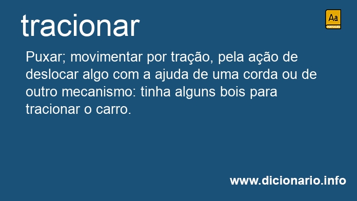 Puxar; movimentar por tração, pela ação de deslocar algo com a ajuda de uma corda ou de outro mecanismo: tinha alguns bois para tracionar o carro.