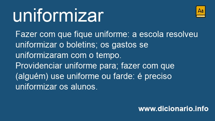 Fazer com que fique uniforme: a escola resolveu uniformizar o boletins; os gastos se uniformizaram com o tempo.