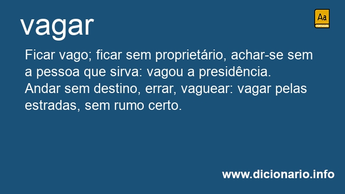 Ficar vago; ficar sem proprietário, achar-se sem a pessoa que sirva: vagou a presidência.