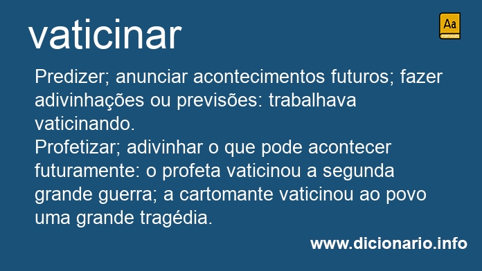 Predizer; anunciar acontecimentos futuros; fazer adivinhações ou previsões: trabalhava vaticinando.